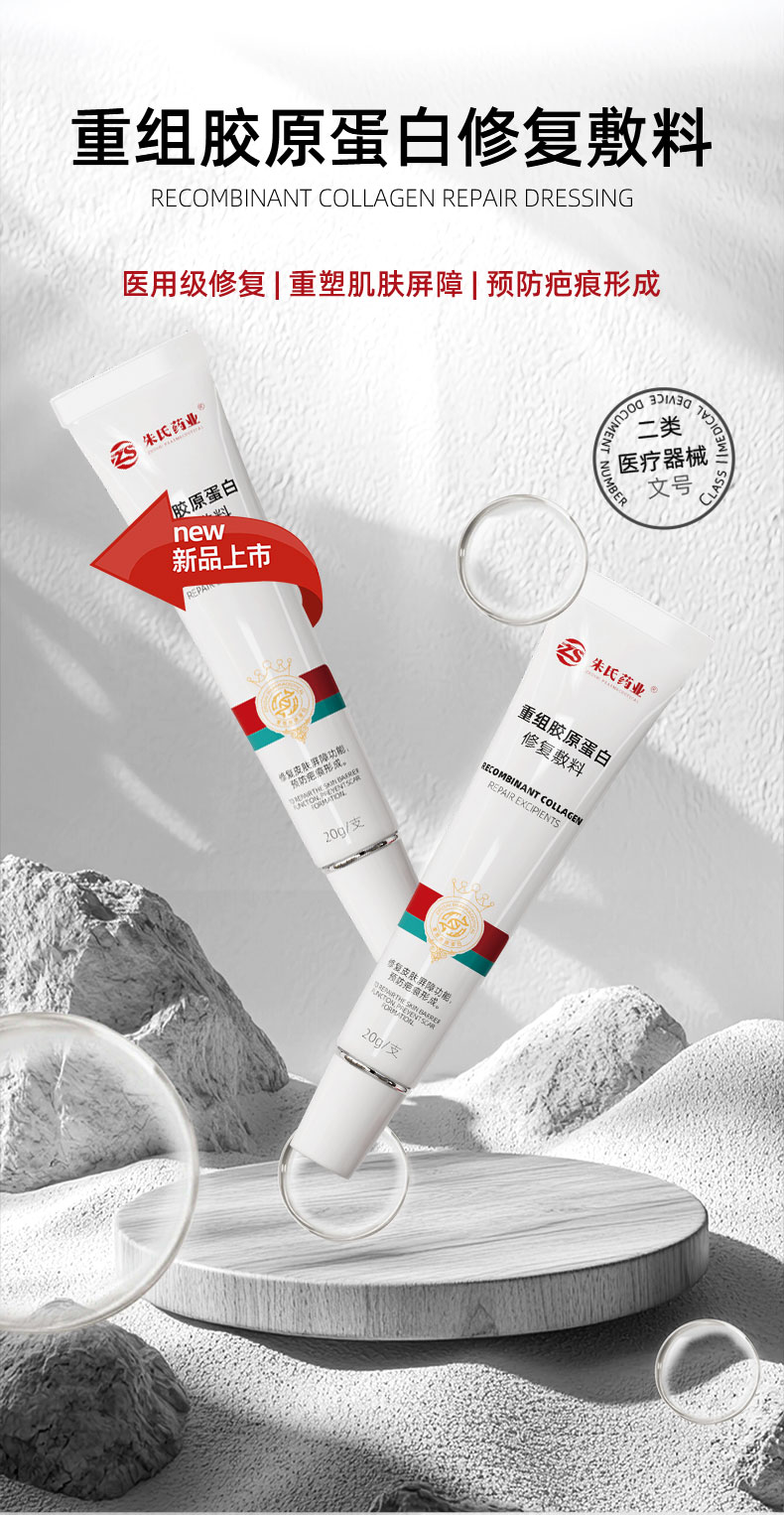 重组胶原蛋白修复敷料(常称械字号胶原面膜 / 医用胶原贴)是二类医疗器械,核心成分为重组人源化 /Ⅲ 型胶原蛋白,主打创面修复、屏障修护、抗炎褪红、保湿抗敏。